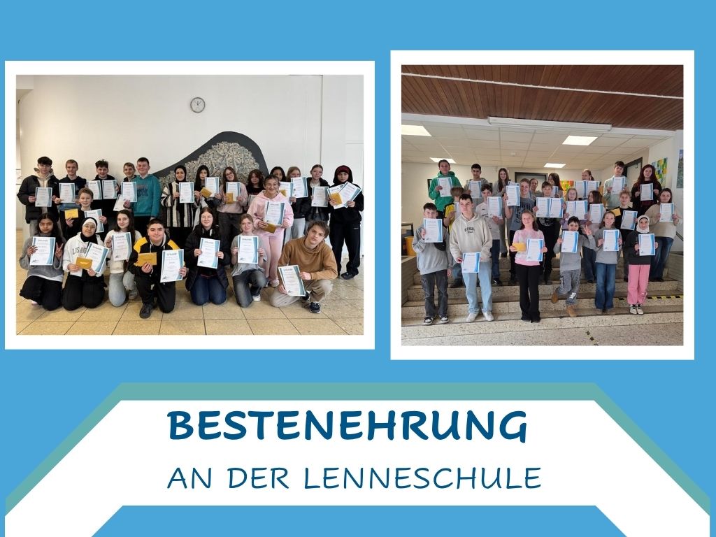 Die Lenneschule ist stolz auf ihre Schülerinnen und Schüler und freut sich, mit der Bestenehrung deren Einsatz sichtbar zu machen. Herzlichen Glückwunsch an alle Ausgezeichneten!